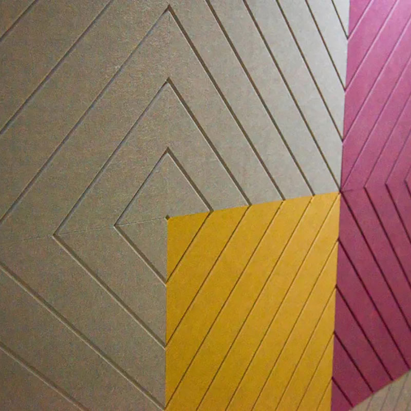 При пробиване с игла има много малки дупки в акустичния панел от полиестерни влакна, което прави акустичните панели от полиестерни влакна страхотен акустичен продукт за намаляване на шума и прави звука по-добър, пространството по-тихо.