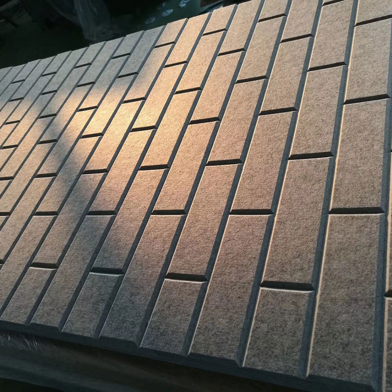 Всички влакна са хоризонтални и вертикални преплетени заедно по време на производството, което прави PET акустичната плоскост твърда, гъвкава и устойчива на удар.При пробиване с игла има много малки дупки в акустичния панел от полиестерни влакна, което прави акустичния панел от полиестерни влакна страхотен акустичен продукт за намаляване на шума и прави звука по-добър, пространството по-тихо.