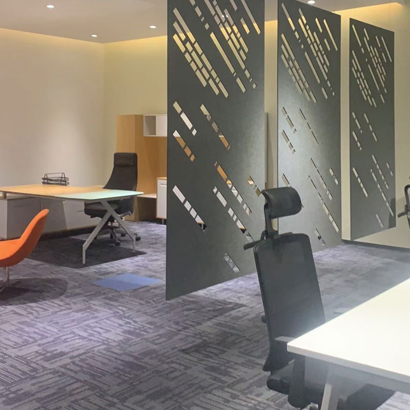 При пробиване с игла има много малки дупки в PET акустичния панел, което прави PET акустичния панел страхотен акустичен продукт за намаляване на шума и прави звука по-добър, пространството по-тихо.